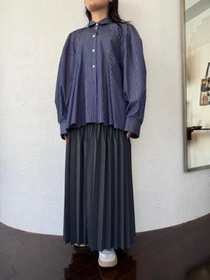 空気が入ったような丸くボリューム感のあるシルエットを表現するために、贅沢にたっぷり生地をつかって、パターンされたシャツ。身体にぴったりしないので、軽い羽織り感覚でスタイリングしていただくのもおすすめです。コットンベースですが、ポリエステル混のため、比較的皺になりづらい素材になります。ENFOLD(エンフォルド)