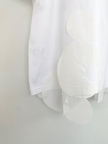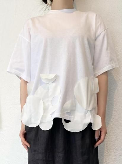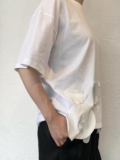 今季テーマ”深海生物”を抽象的に表したモチーフを裾にあしらったデザインTシャツ。ソフト天竺コットンのボディに、モチーフはややマットなポリエステル地を使用。