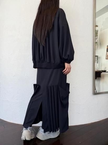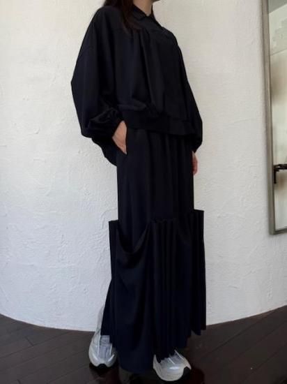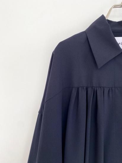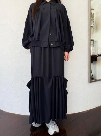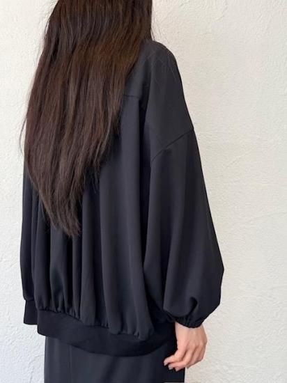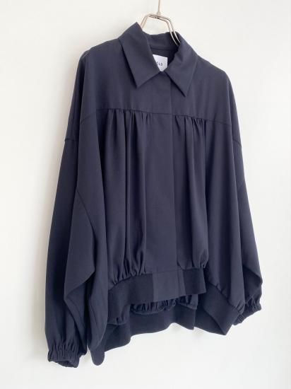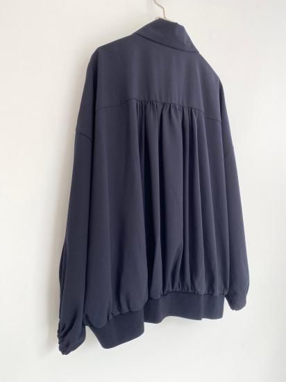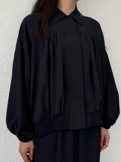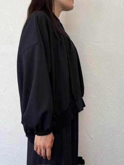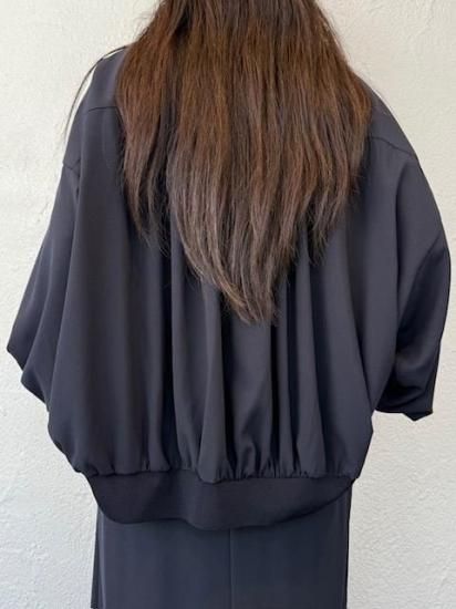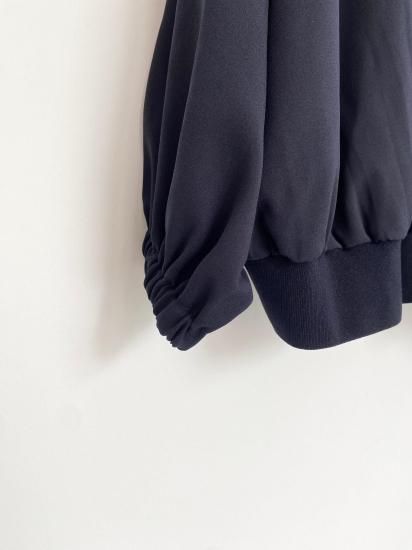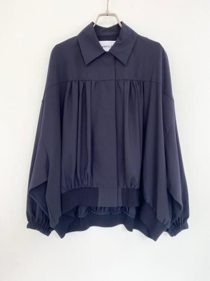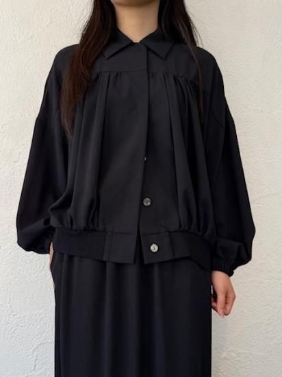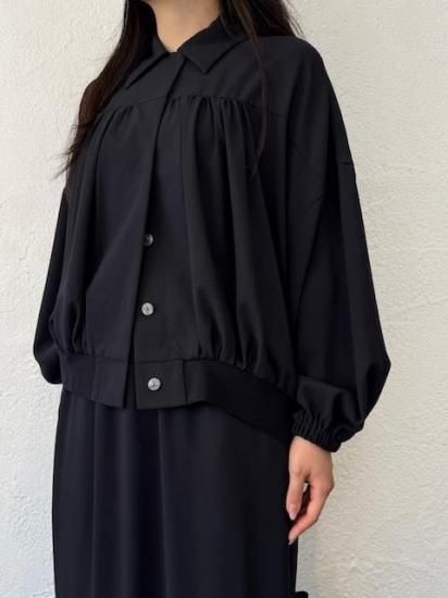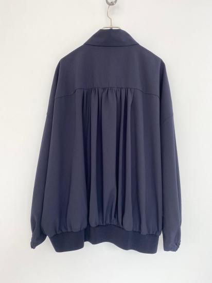 ・ギャザーによる縦のラインが美しく、裾にかけては横のカーブヘムが特徴のブルゾン・ブルゾンというカジュアルなアイテムにも関わらず、襟付きタイプ&比翼仕立てと、上品な一面