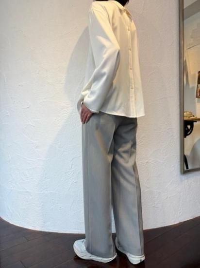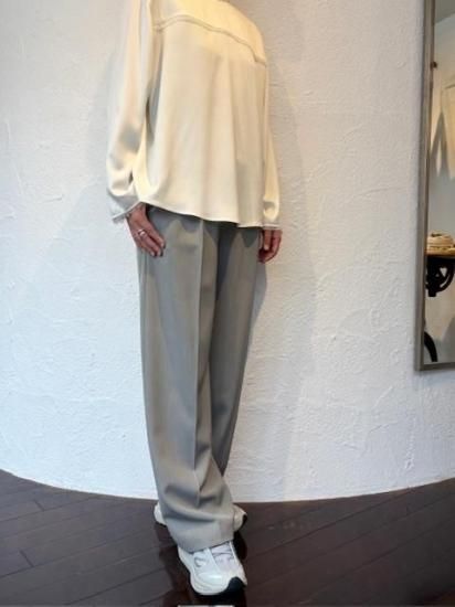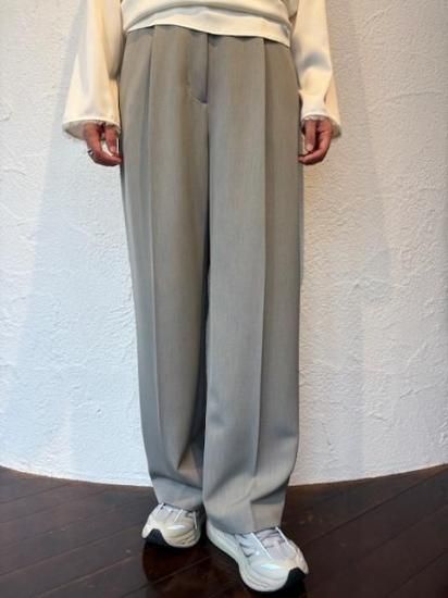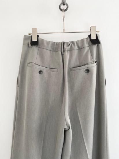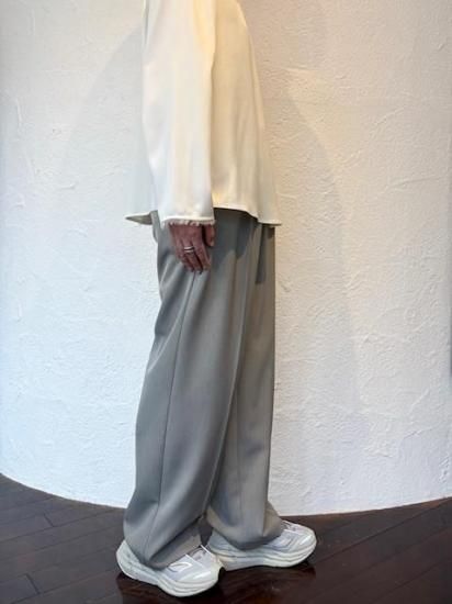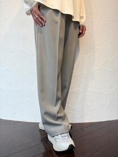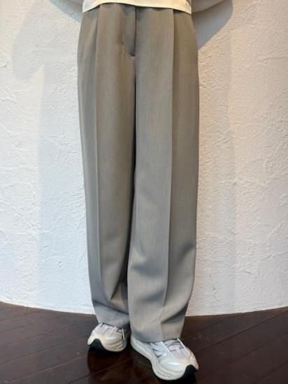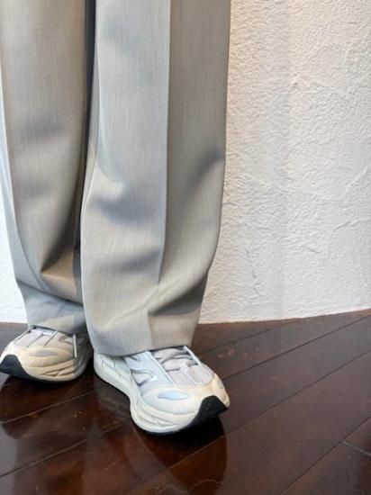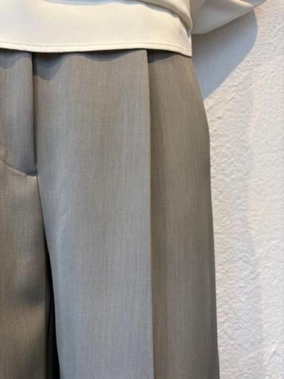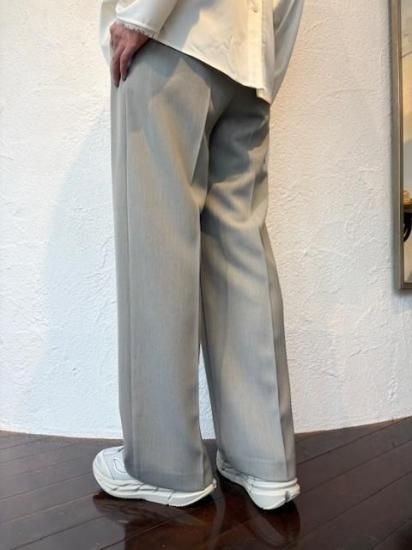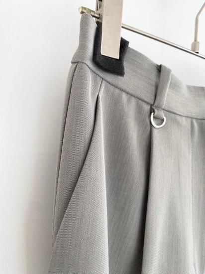 CLANEで定番となっているスラックス、Carrefourでは初のお取り扱いとなり入荷しました。視認できる織り感のあるポリエステル素材は、ウールの様なハリ感がある上品な素材で、