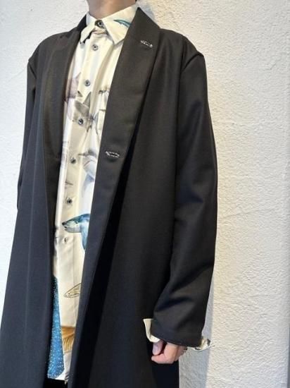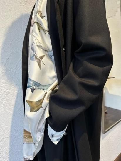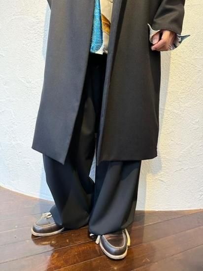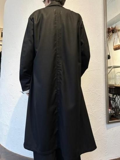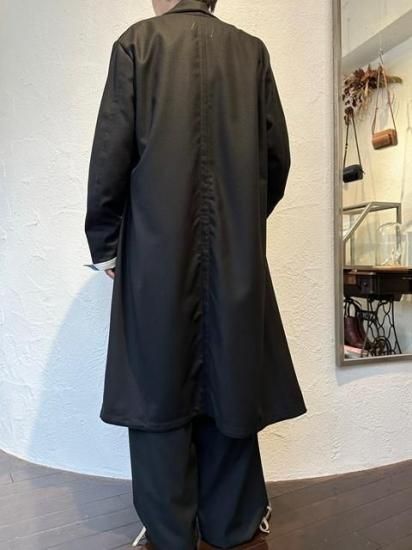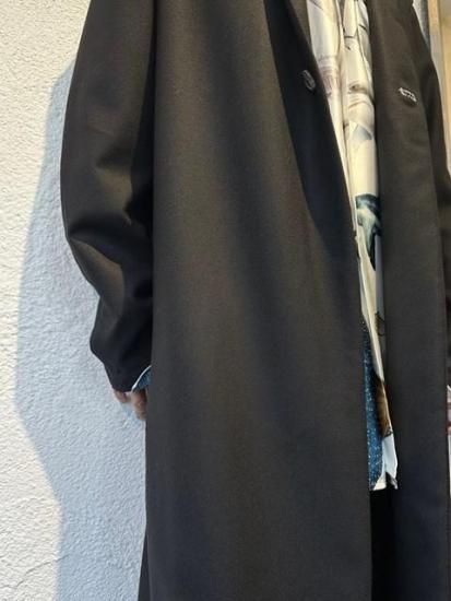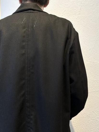 ・潔くシンプルな美しさが目を引くシングルコート・程よい厚み・漆黒の艶のあるデッドストックフランネル生地でのライニングのない一枚仕立て