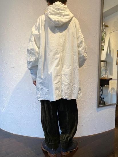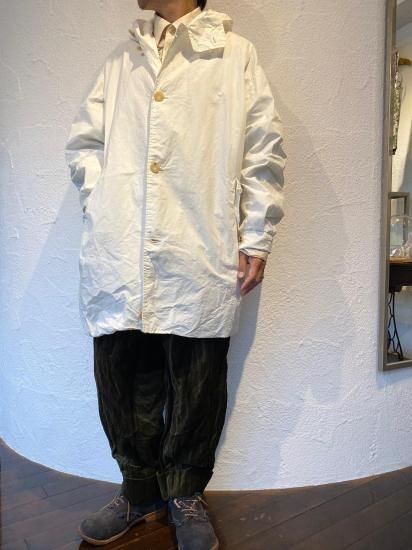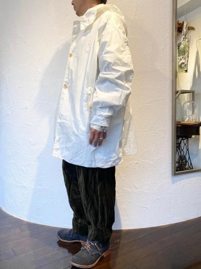 ・素材は、ワックスドコットン生地を使用、やや厚みを感じる様な張りがあり、経年変化て少しずつ柔らかくなり、アタリの様な皺も現れる