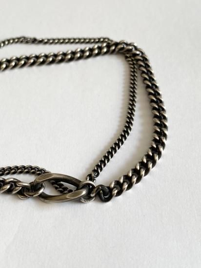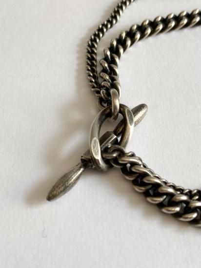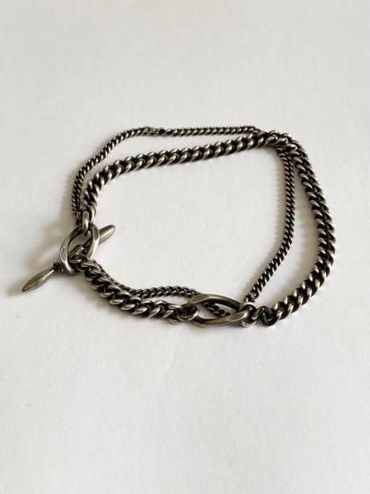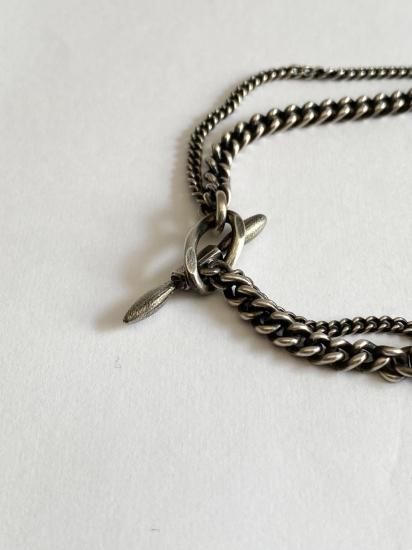 ・2種のチェーンが連になったデザイン・開閉はトグル型のシルバーパーツでおこなう