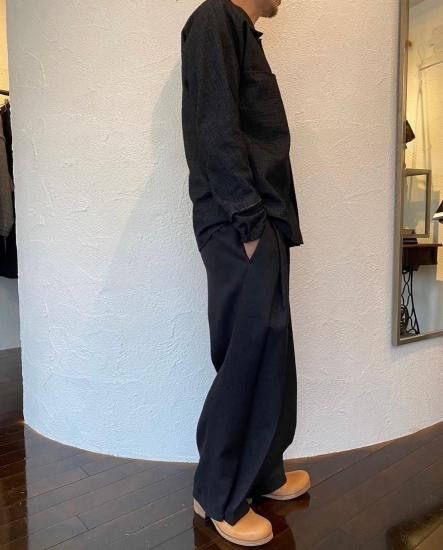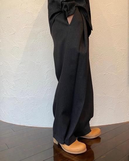 ・m.a+の中でもワイドなモデル・m.a+ならではの1枚生地でパンツを構成しており、着用時に美しいドレープが生まれる