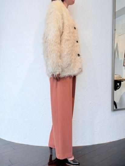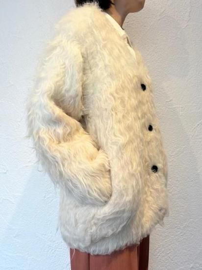 たっぷりとした毛足が魅力のシャギーニットカーディガン。そのボリューム・存在感・スラッシュポケット仕様の機能は、秋のニットアウターの一面も