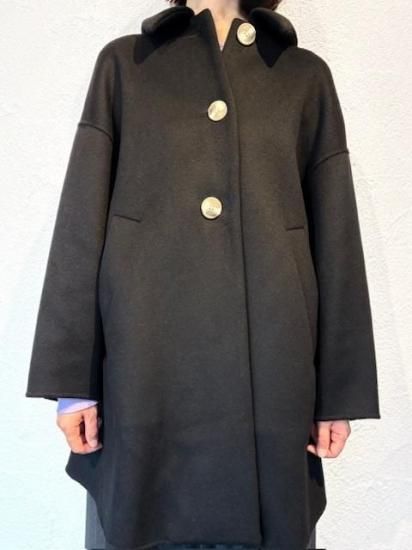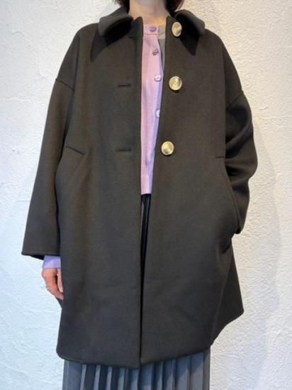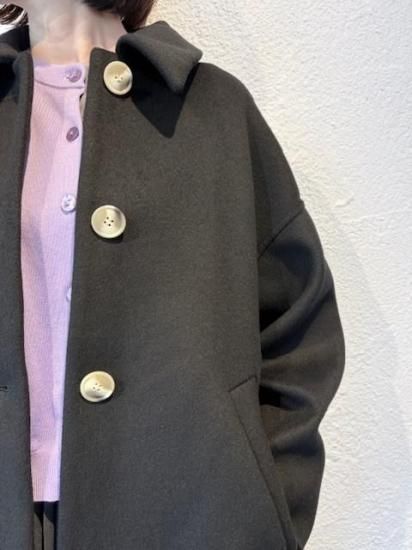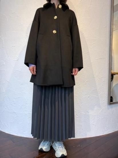 ぷっくりとした襟は二重仕立てで、首元が暖かいコートです。