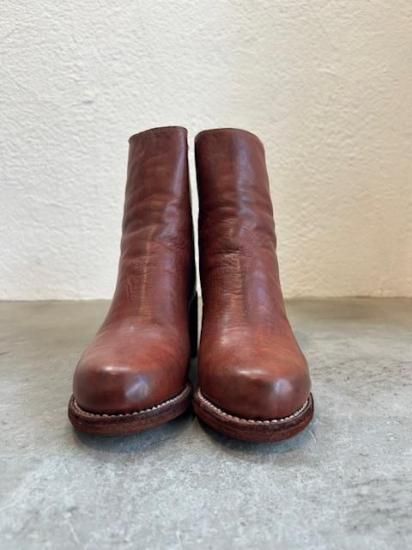 ・一枚革で形成された6cm角ヒール7cm積み上げのバックジップブーツ・革は繊維が細かく艶がでやすいと言われるホースレザーでオーダー