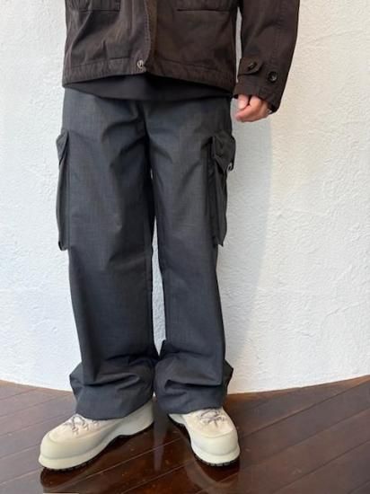・”TECHNO WOOL”という名称の生地を使ったの新型カーゴパンツ・同生地は、ポリエステルウール生地にポリウレタンコーティングを施し撥水機能を備えている生地