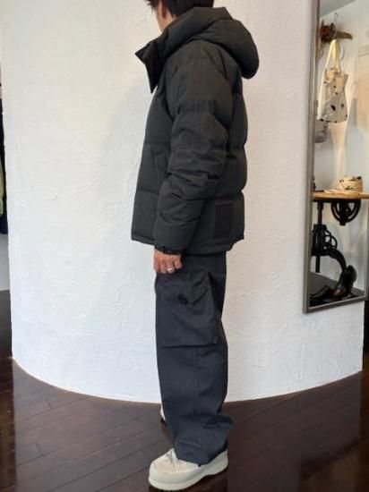 ・裾のドローストコードを伸ばしたままのシルエットは、太めのストレート、