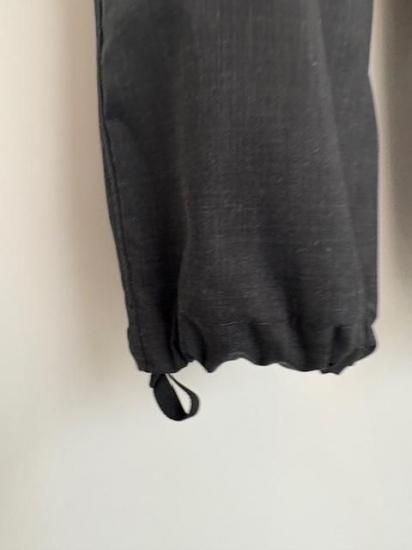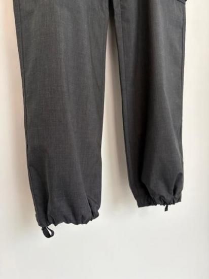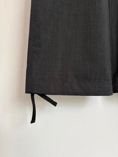 ドローコードを絞るとテーパードシルエットになり、膝下は丸みを帯びた立体なシルエットとなる