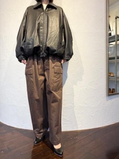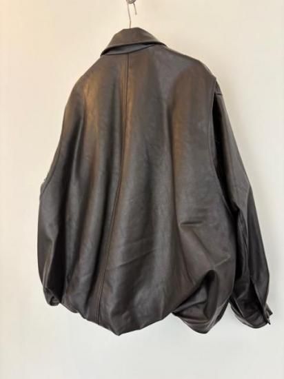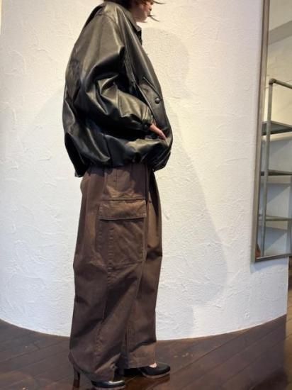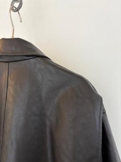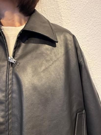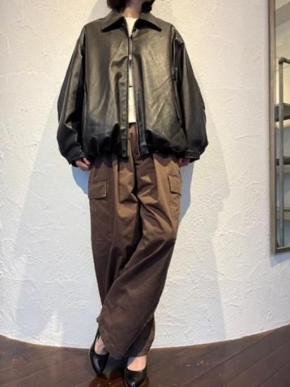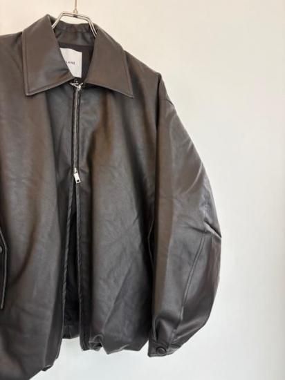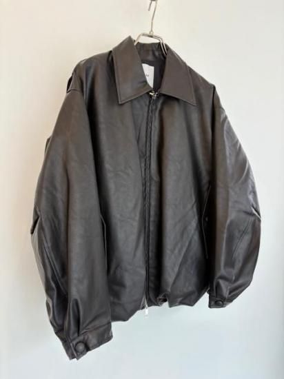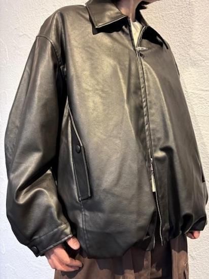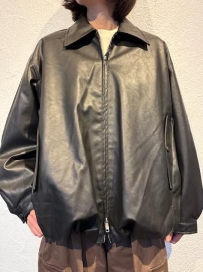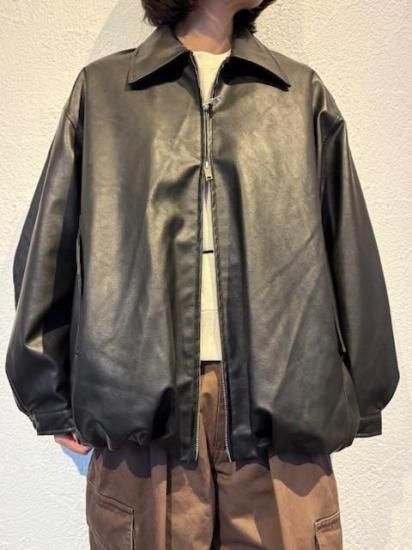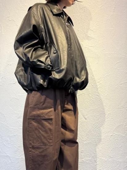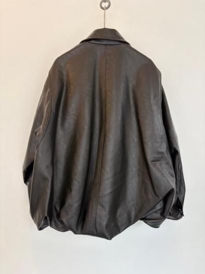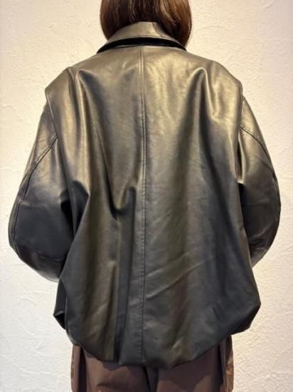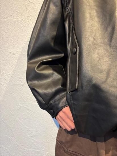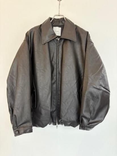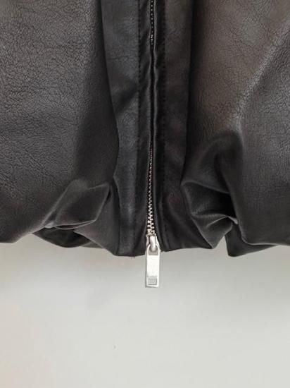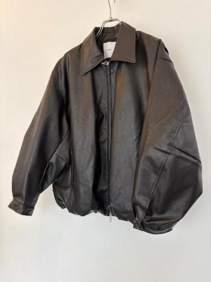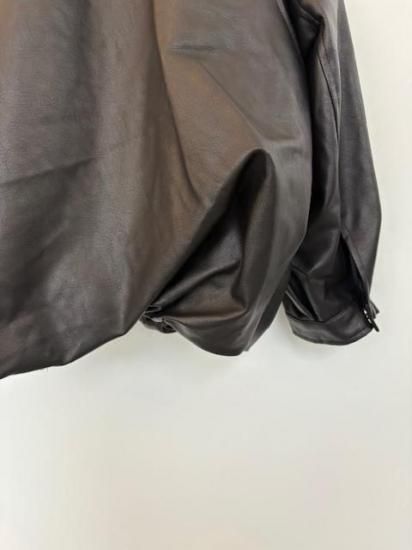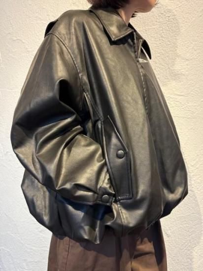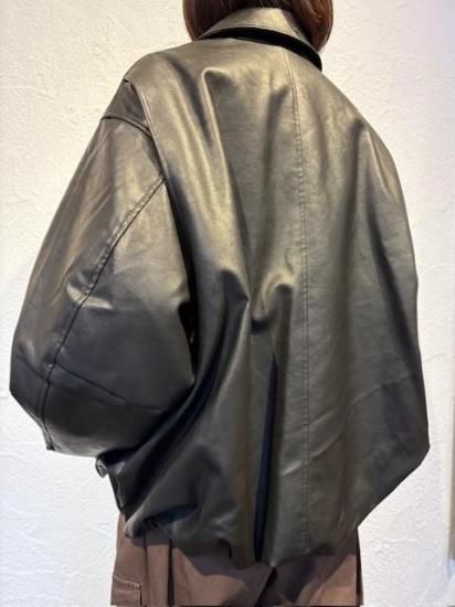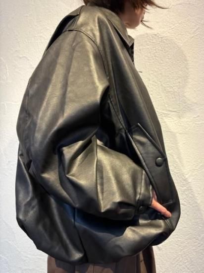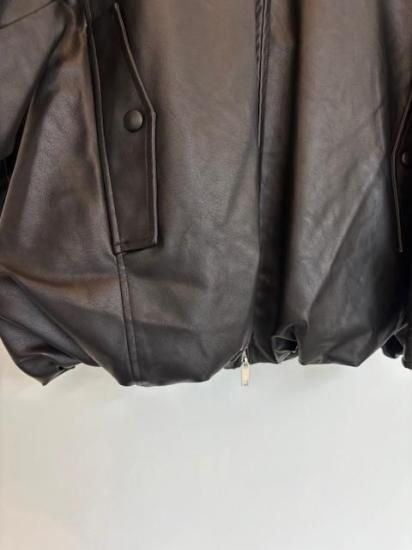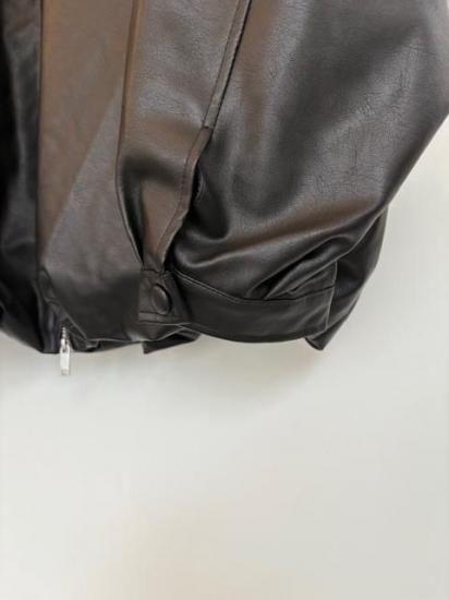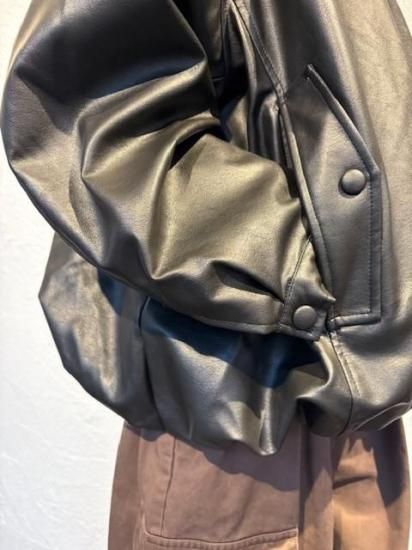 バルーンシルエットのフェイクレザージャケット。滑らかなな手触り適度なつやのある素材です。