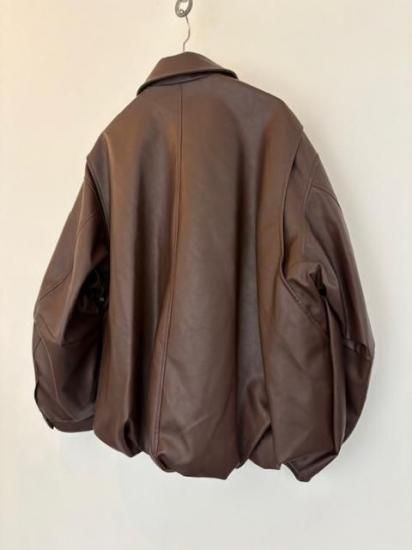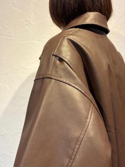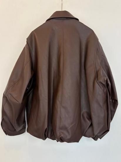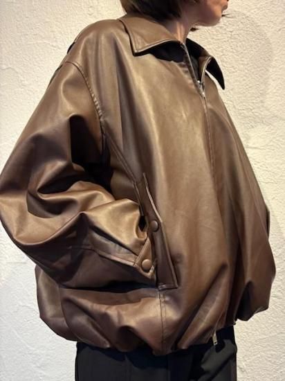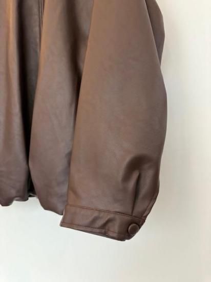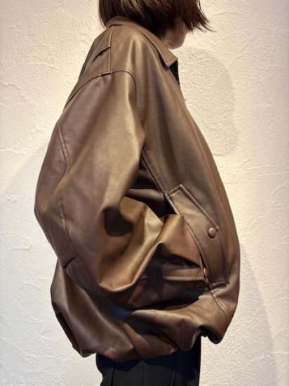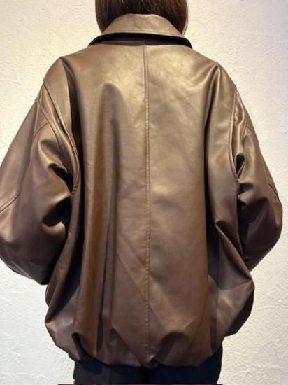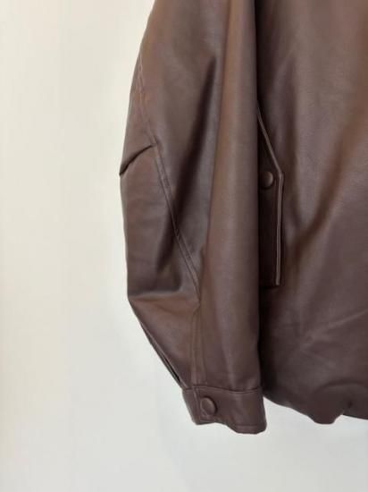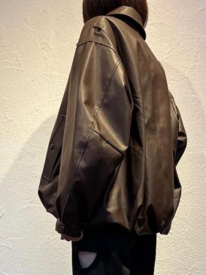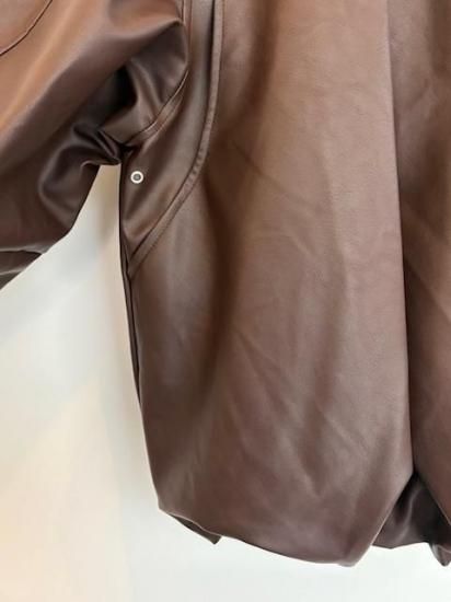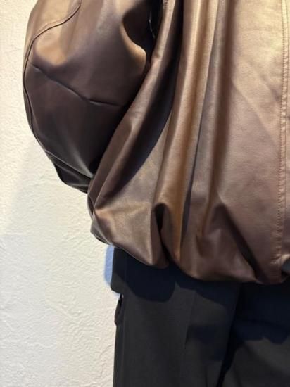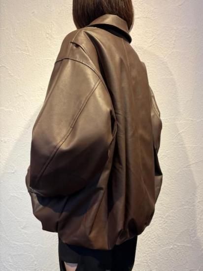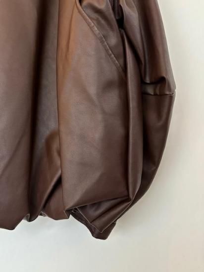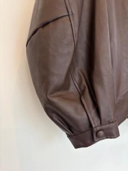 バルーンシルエットのフェイクレザージャケット。滑らかなな手触り適度なつやのある素材です。