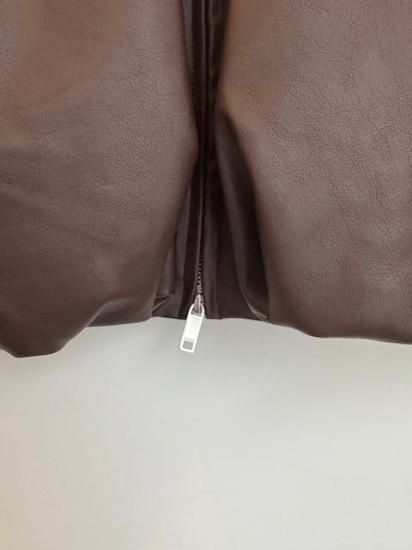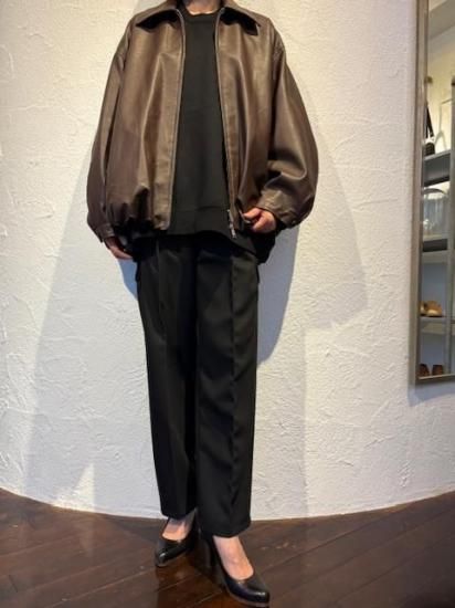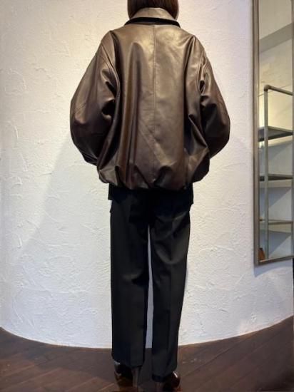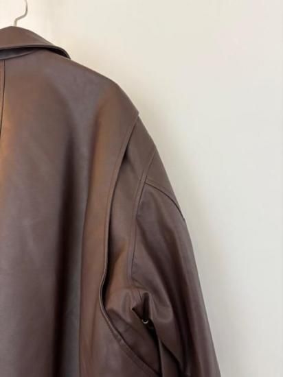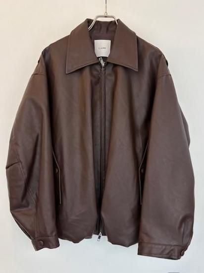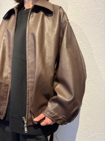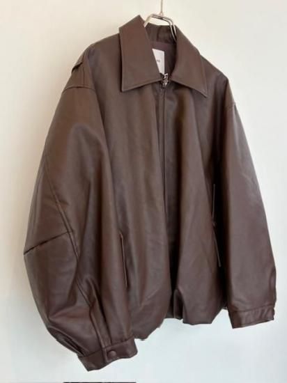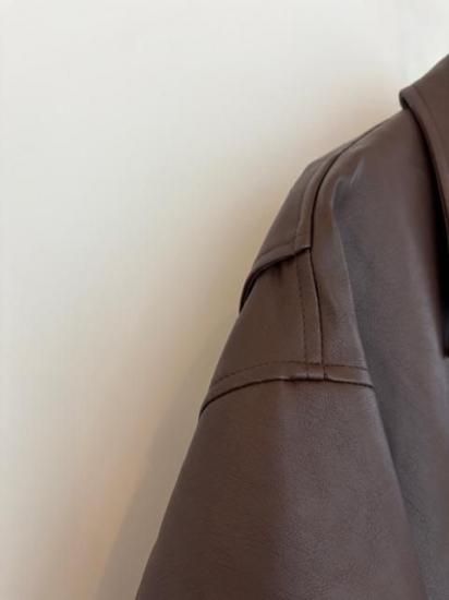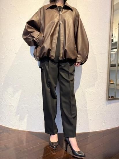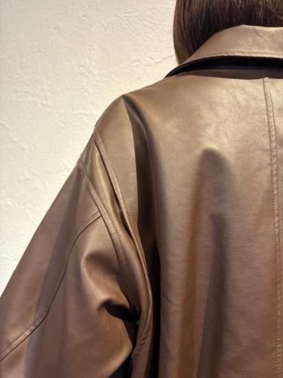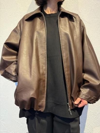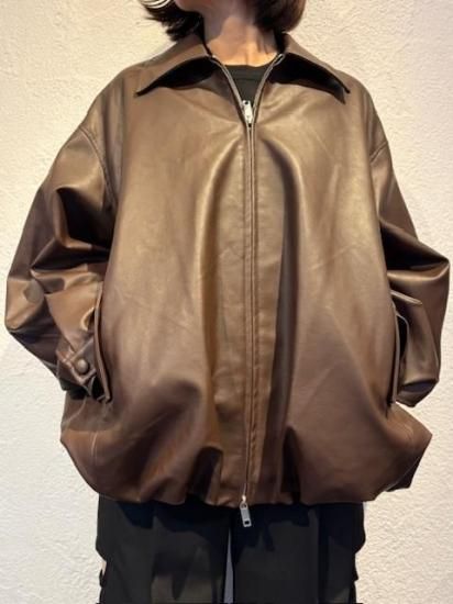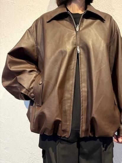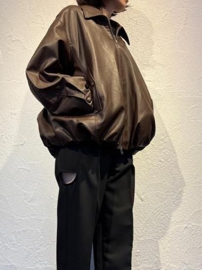 バルーンシルエットのフェイクレザージャケット。滑らかなな手触り適度なつやのある素材です。