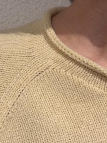 ・首・袖・裾にリブがなく、デザイナー達がくるりんと呼んでいる、くるっと巻き込んだ仕様となっており、締め付け感のない着心地である