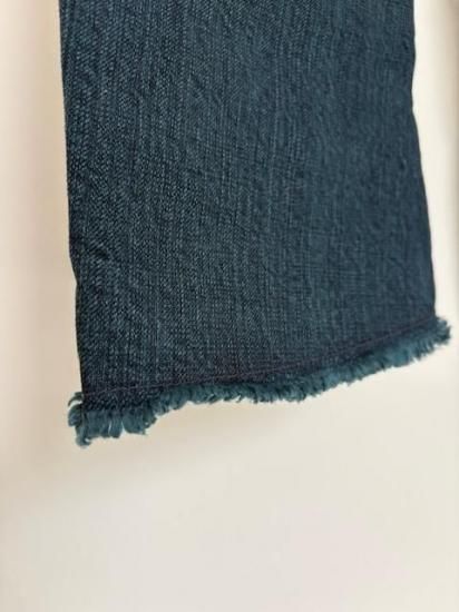 ・ウェスト部分は着用していくと馴染んでややゆとりがでてくるため、ベルトを使ってのスタイリングがおすすめ、その様に馴染みが出てくる頃には、履きシワのアタリも独特の雰囲気を纏ってくる経年変化が楽しめるパンツ
