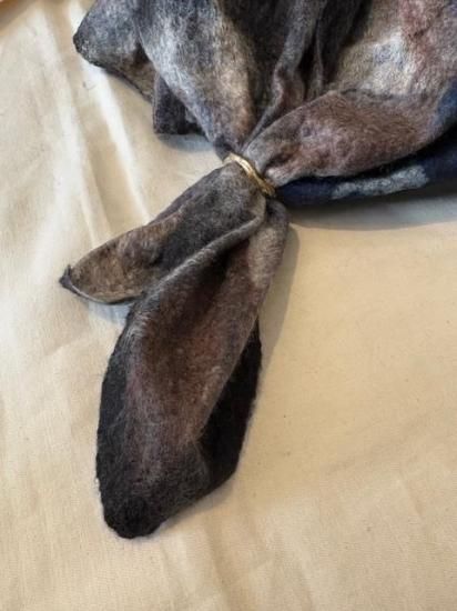 イタリアフィレンッエを拠点にヨーロッパの名だたるメゾンブランドのファブリックデザインを行っている、 ファブリックデザイナーの重鎮Silvana Manettiが初めて自身の名前で発表したストール。 自社のLABにて研究し完成したコレクションは原糸を独自の方法で合わせたフェルト状になる前の 非常に柔らかで軽く温かみのある肌触り、使って行くうちにフェルト化してゆく経年変化や一つとして同じ物ができないクラフト、ハンドメードならではの特性もお楽しみ頂きたいストール。