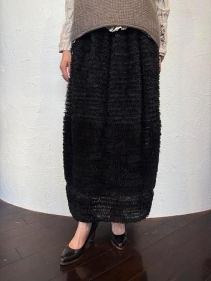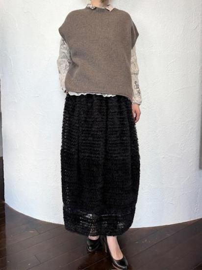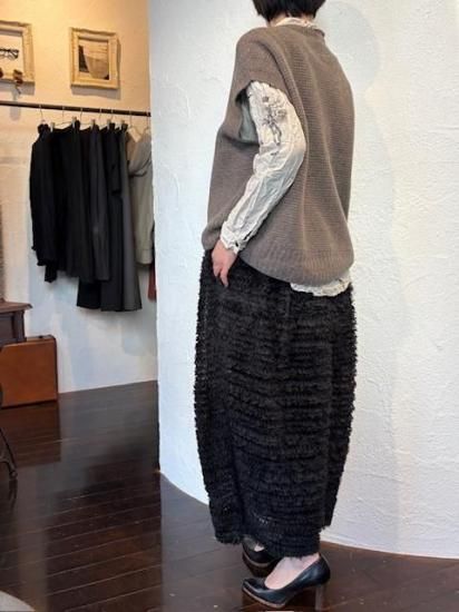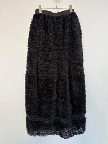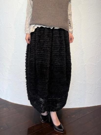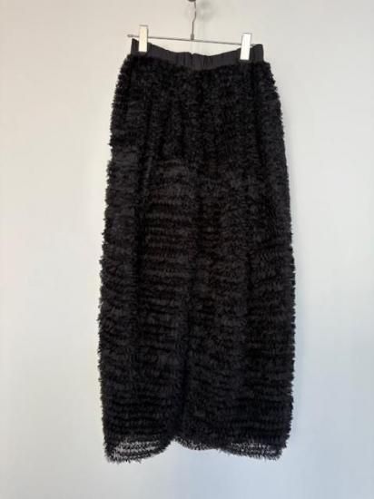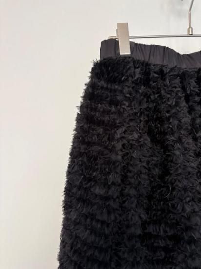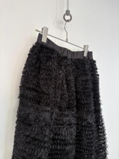 ギャザー状のリボンを、網状のチュールに埋める様に飾り付けたDoll Skirt。華やかさはもちろんのこと、立体的なフォルムをしたスカートで、コンパクトなトップスには抜群に合う