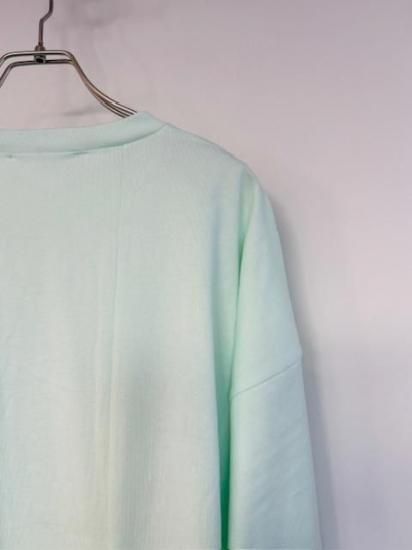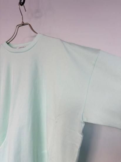 やや肉厚なコットンジャージー、双糸撚りにすることで、洗濯後の斜行を軽減させる効果がある