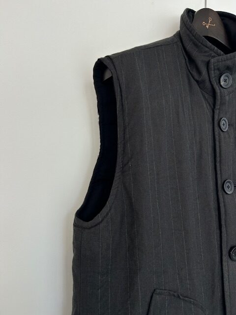 ジェフェリービースモール社のテーラリングの研究より生まれたオリジナルのハイネックリバーシブルベストです。