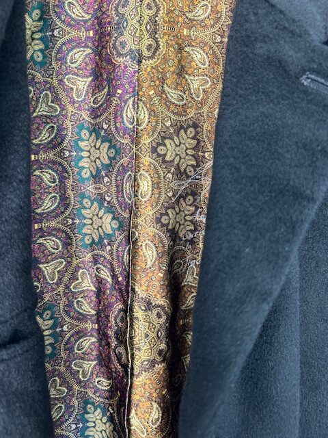 先程、ご紹介したヴィンテージグレンチェックの生地を染める事で薄っすらとストライプ柄が浮き上がっております。