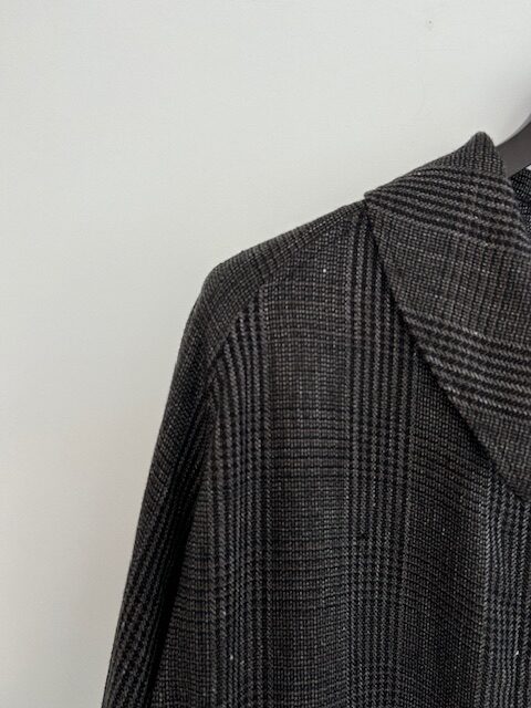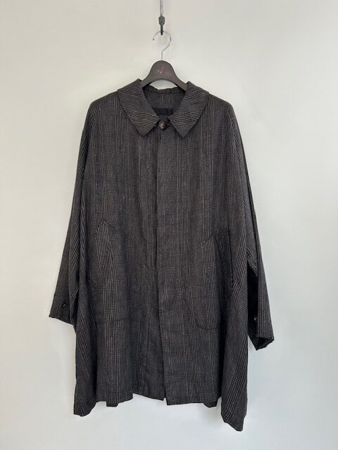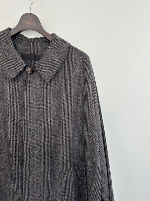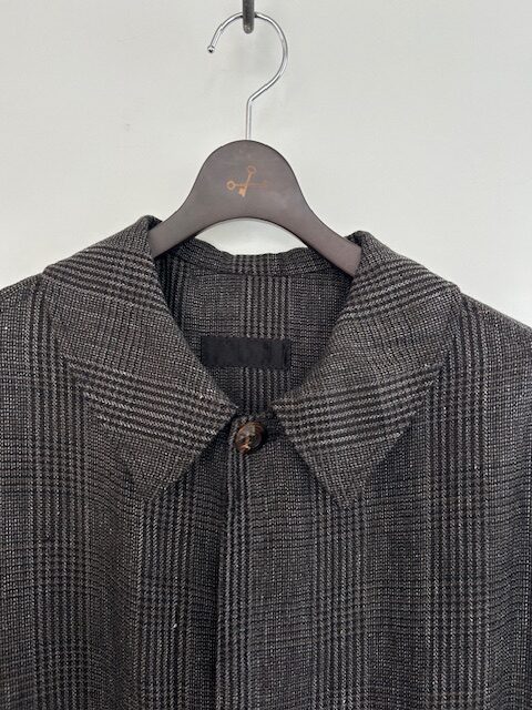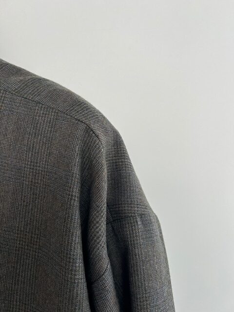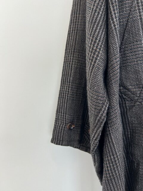 素材はルイージパリソット社のリネンウール素材グレンチェックの生地を染めることでチェックの生地を不均一に仕上げる事での