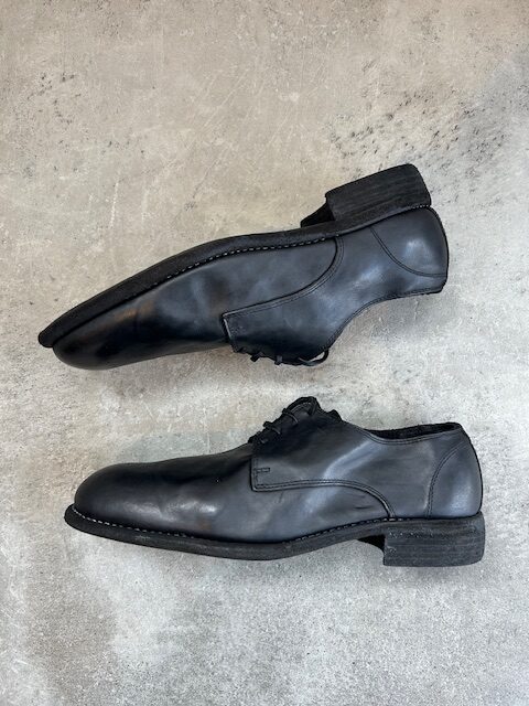 上品ながらも無骨さがあるGUIDIですが、足馴染みは最初からよく、履きこむ事により革本来の良さが出てくる革靴です。