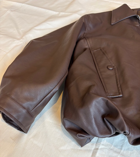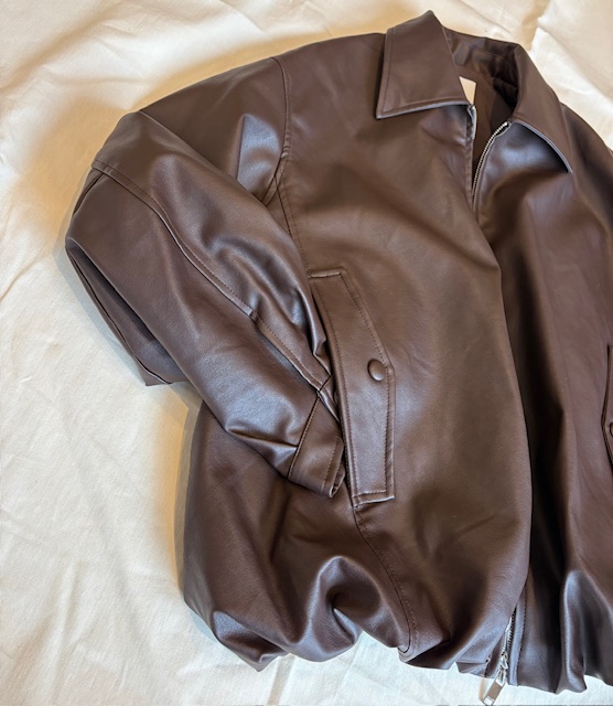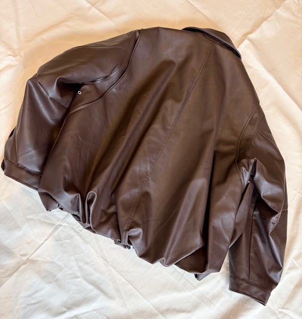 “ぱふっ”としたふんわりしたシルエットが愛らしく、フェイクレザーのクールな質感と良く合っています。