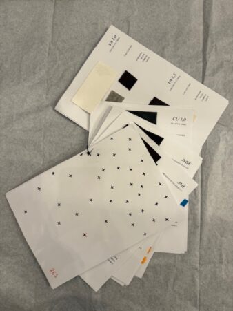イタリアより生地や革のスワッチも届いておりますので、お好きな素材や色をお選びいただけます