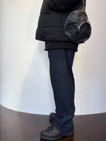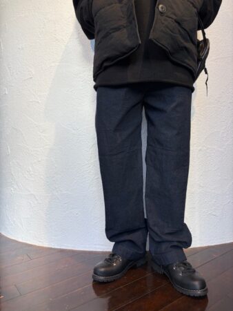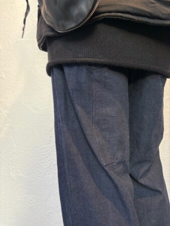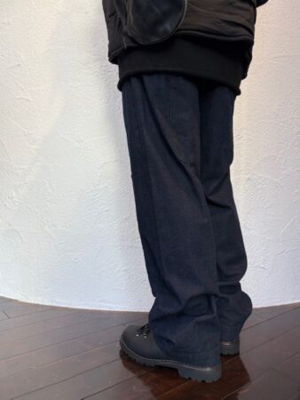 パンツはウール100%のデニムカラーで染めた生地をつかった