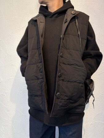 Vestは、リバーシブルの裏側を表にして着ています。ベサムポケットが裏にもちゃんとあるので、