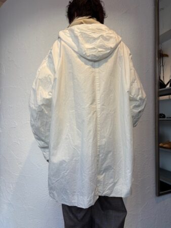 主役のRICORRROBEのWaxed Cottonのコートはコットンベースのコートのため、