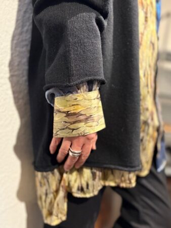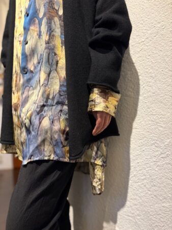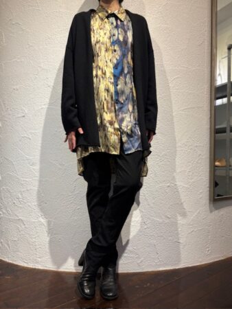 GEOFFREY B. SMALLのシルクシャツ・MOTHER HAND artisanのカーディガンを
