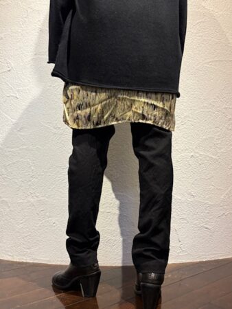 ウェストは意外にも86cmあり、ベルト芯の無いつくりですっきりと履くことができます。