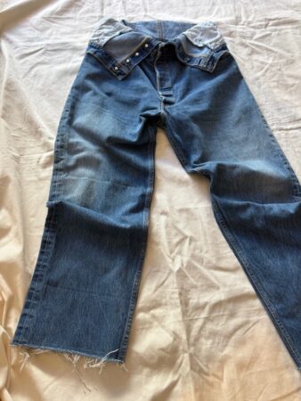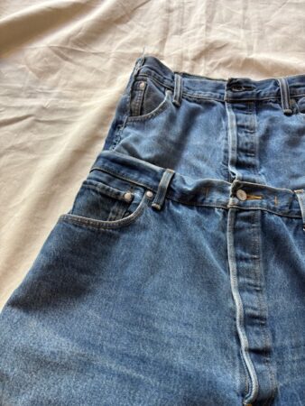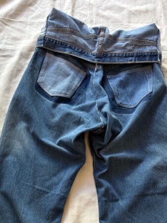 全体を再利用できる個体を本体として、再構築したデニムパンツです。