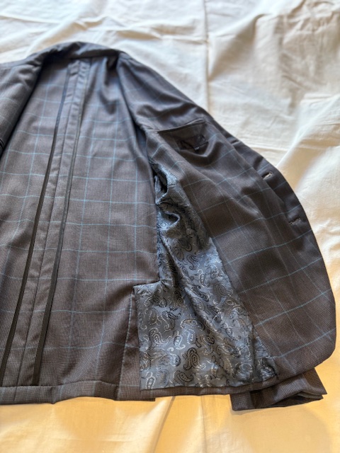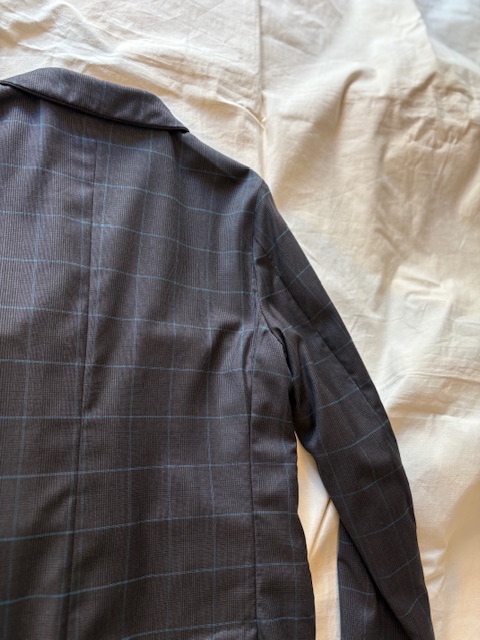 青みがかった様な光沢のあるWindowPane Plaid柄のそれは、