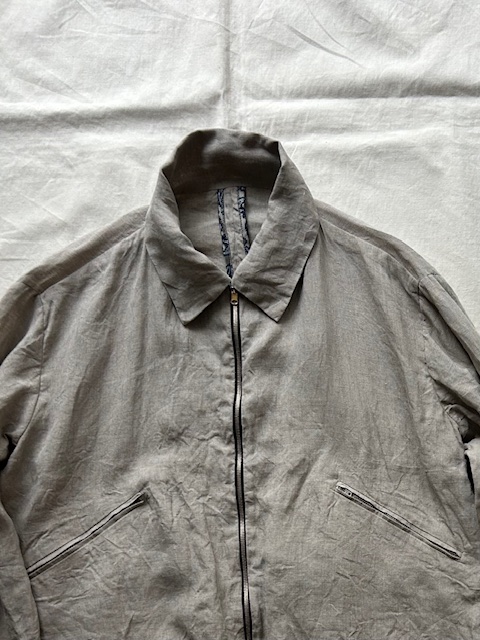 テーラーメイドに基づき製作されたリネンジップアップブルゾンをご紹介いたします。
