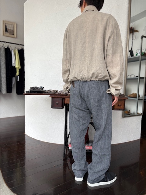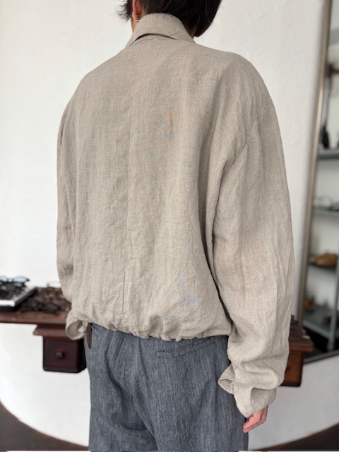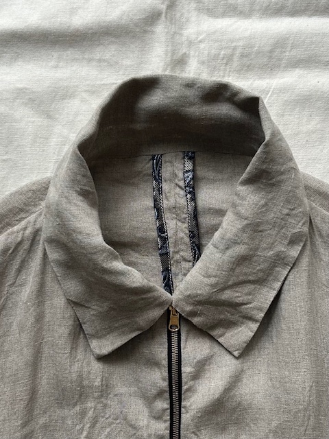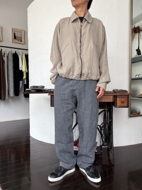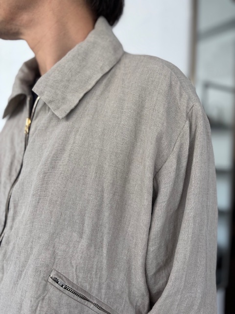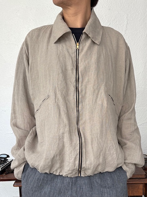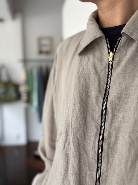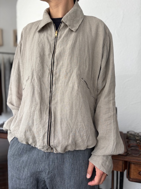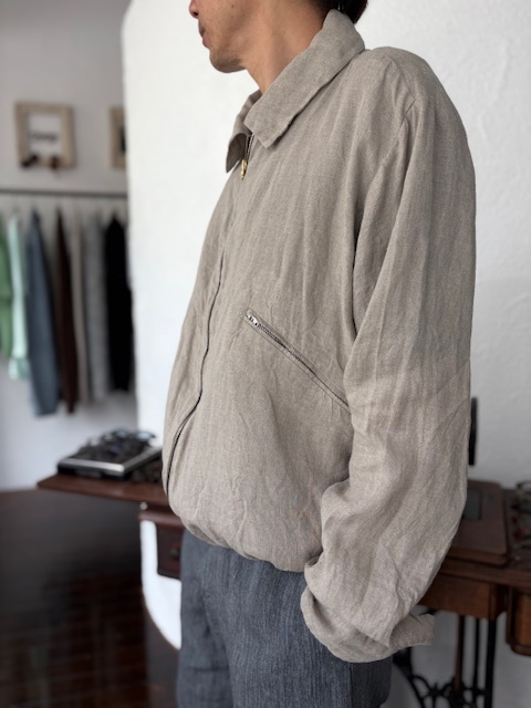 テーラーメイドに基づき製作されたリネンジップアップブルゾンをご紹介いたします。