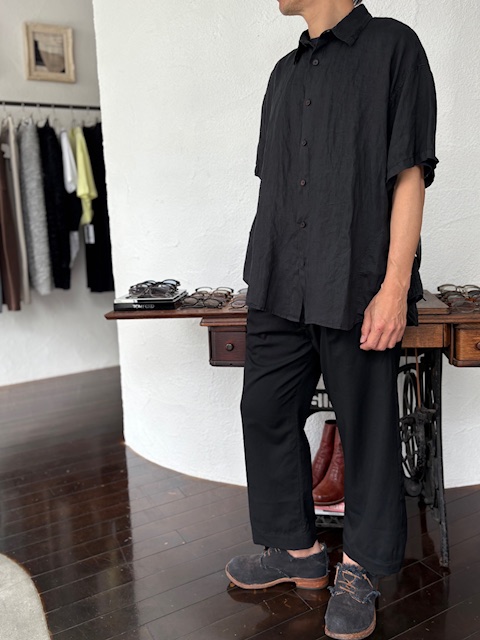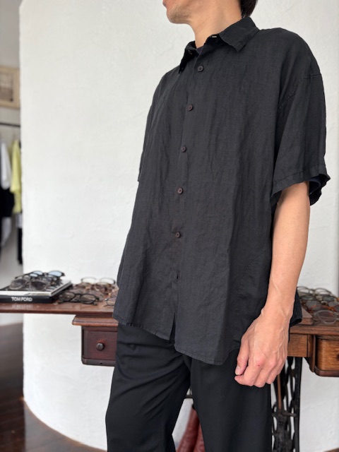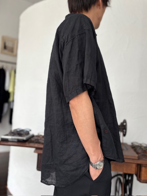 同じくイタリア・ヴァレーゼ産のピュアスーパーライトリネンを使ったEV11の新作半袖シャツは、ワンサイズコンセプト。
