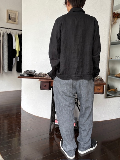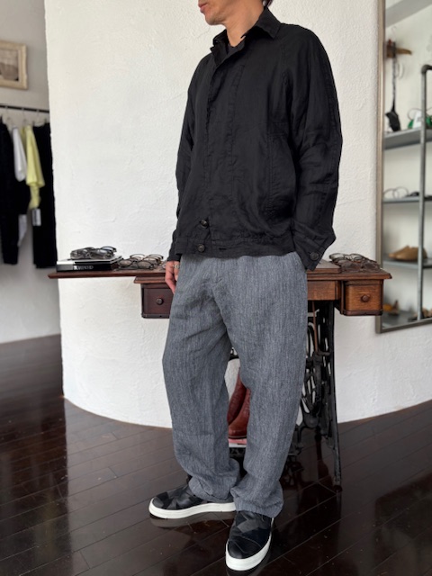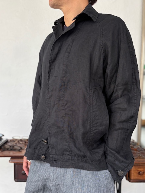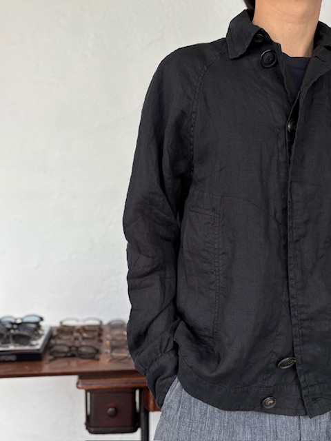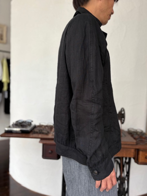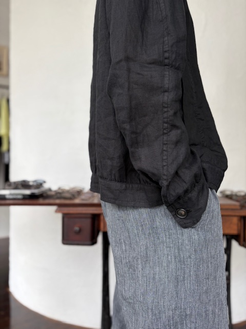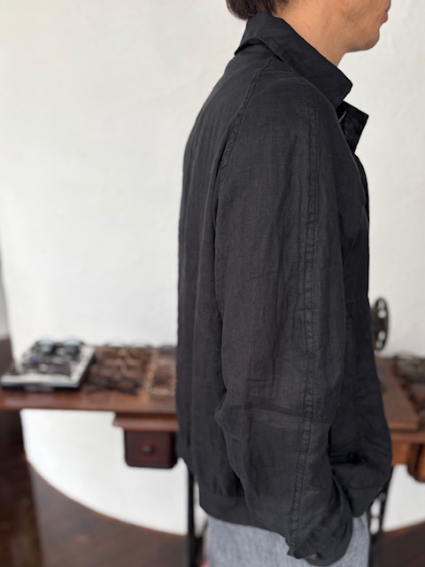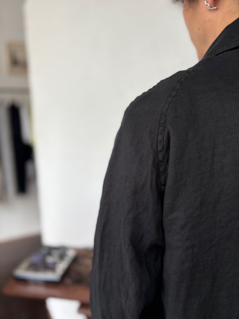 共に、イタリア・ヴァレーゼ産のピュアスーパーライトリネンの手染めブラック素材。