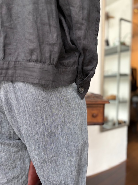 ヴァレーゼ産の超軽量リネンは、風通し・肌離れも良く、盛夏を見越した素材。